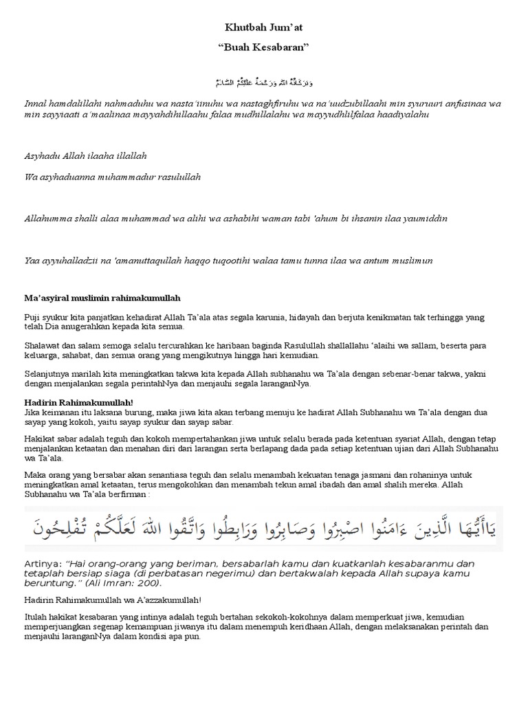 Doc Contoh Teks Khutbah Jumat Singkat Samodra Sam Academia Edu